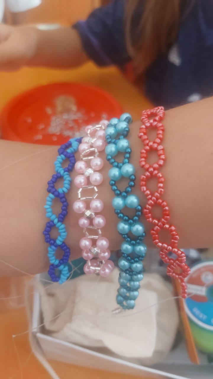 Armbänder werden gebastelt – oft braucht man ein „Willkommensgeschenk“!