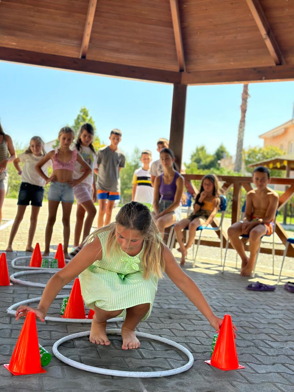 es nicht mehr so extrem heiß ist, Spiele im Freien gemacht.