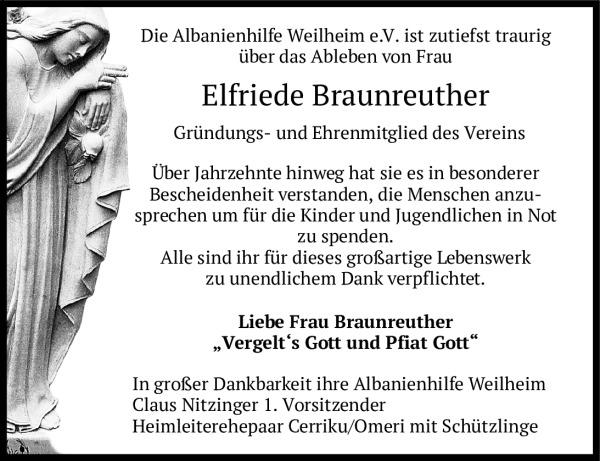 Am 20.11.2025 verließ uns unser Gründungs- und Ehrenmitglied Frau Elfriede Braunreuther. Der Verein und besonders die Kinder und Jugendlichen in Elbasan und Suppenküche Lac haben ihr sehr viel zu verdanken. Sie sammelte unermüdlich Spendengelder, lebte für den Verein.
