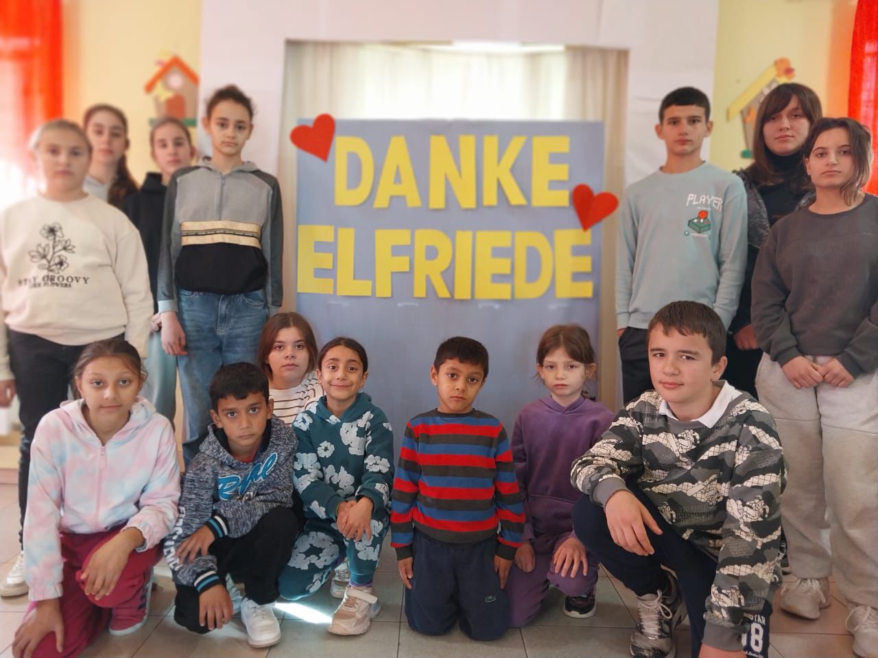 Weihnachten 2023 wurde gebührend gefeiert mit Gottesdienst-Besuch, Geschenken (die „Kleinen“ bekamen gespendete Pullover) und einem „besonderen“ Weihnachtsessen! Zu sehen ist auch ein Gruppenbild mit dem anwesenden Personal. Wir sind dankbar für ihr Wirken in unserer Einrichtung!